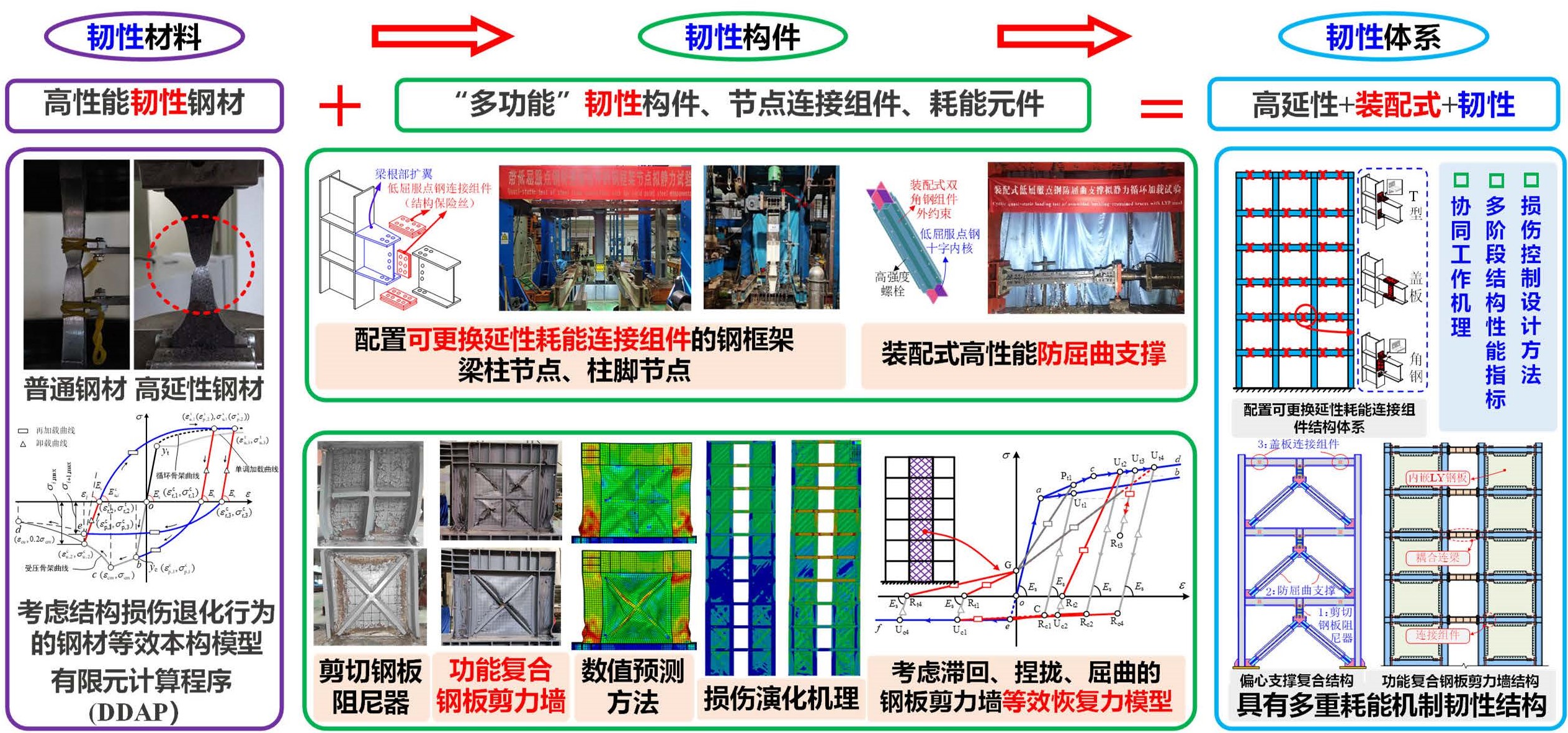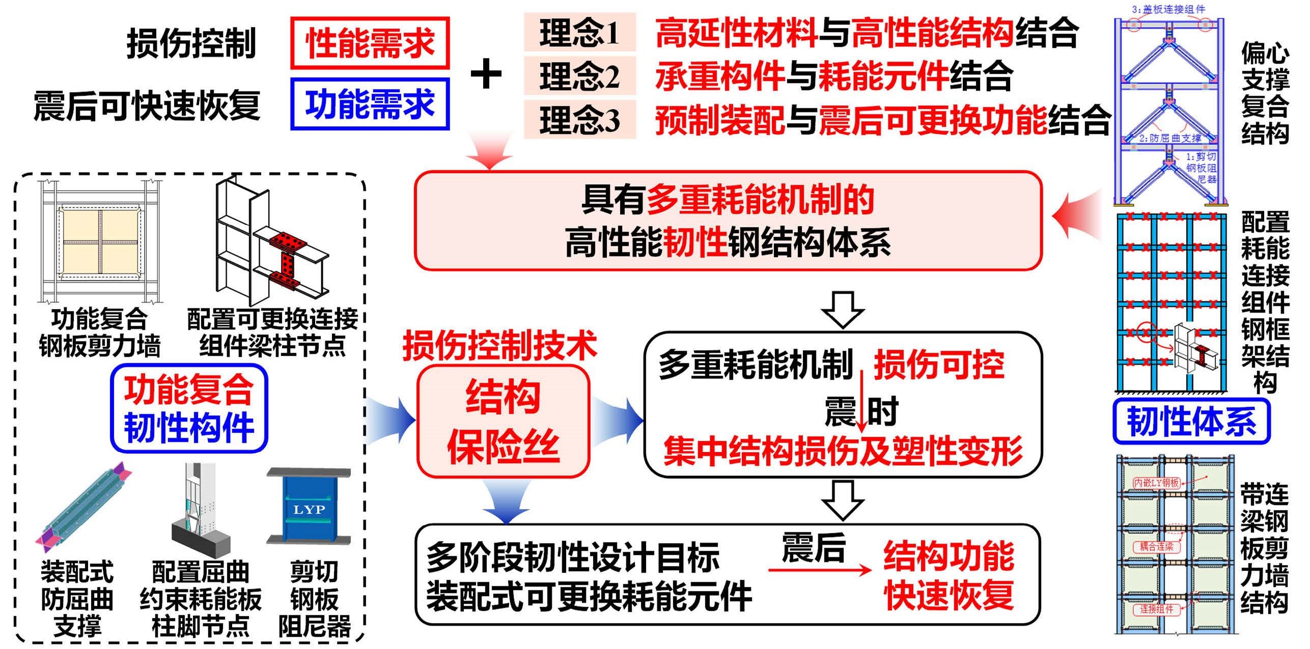 图2 高延性钢结构损伤控制与韧性提升关键技术及应用研究工作
