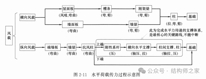 无论是竖向荷载还是水平荷载的传递,我们要抓住一个永恒不变的核心:不管力的传递过程如何曲折,但最终都要百川入海,那就是最终都要传到地基上。我们可以把力的传递过程看成力的流动,最终都要流到地基这个海里面。因此,力的传递过程之中不能出现任何中断的情况。否则可能危及整个结构的安全。竖向荷载及水平荷载传力过程示意如图2-10、图2-11所示。 在施工时没有将支撑组成一个稳定的空间体系就开始施工其他榀刚架,这次《门规》特别把这部分单独拿出来强调,并且史无前例地把这条列为强制性条文,这说明不仅施工过程中施工人员不懂正确的施工顺序,而且设计师也是似是而非,施工交底时既不强调,图纸上也没有任何说明,结果造成大量的施工现场事故。这就是典型的结构体系是可变还是不可变没有搞清楚,结果大风一吹,整个刚架全部倾覆,造成重大的人员伤亡和财产损失。图2-12就是支撑没有安装,没有形成可靠的空间体系就施工其他榀刚架所酿成的悲剧。 图2-13、图2-14为山墙风荷载传递路径及山墙受力简图。 文章来源:《门式刚架结构实战设计》(第三版) 门式刚架结构实战设计(第三版)(朗筑·张俊)2024.10.pdf 链接: https://pan.baidu.com/s/1xqbz6tsHSeqnpcpyv7UXOw?pwd=p8p3 提取码: p8p3 |